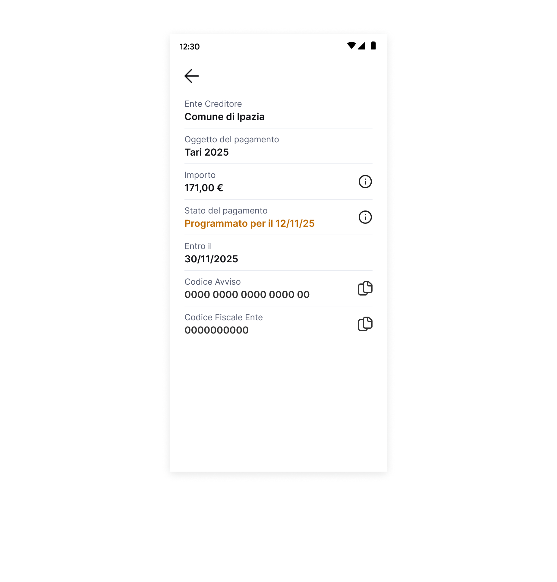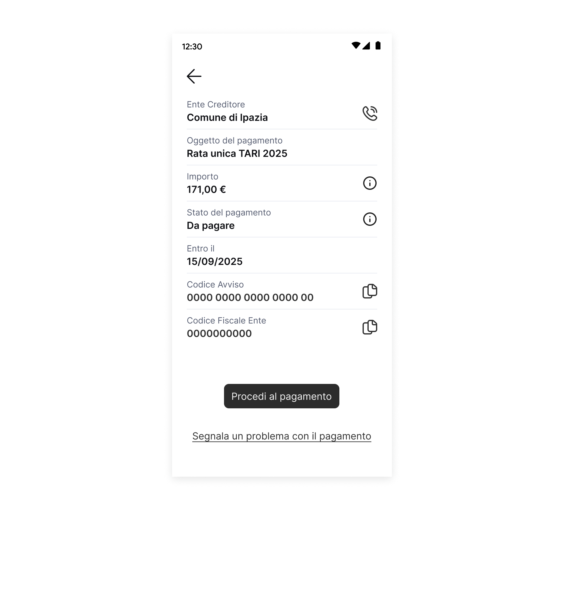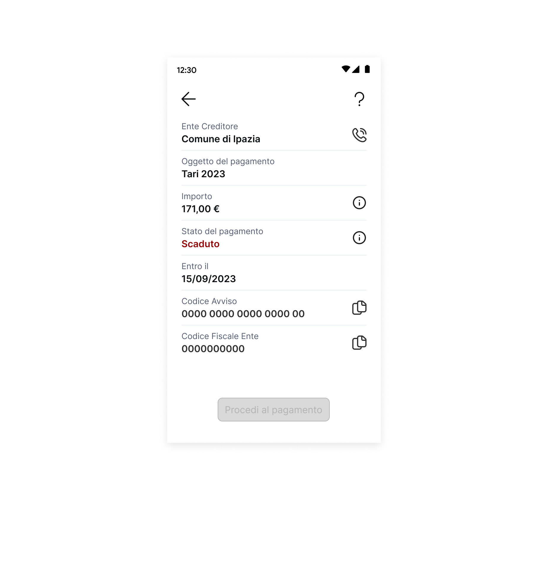 In questo caso, è buona norma mantenere i dettagli della richiesta di pagamento e spiegare all'utente i motivi per cui l'avviso non è pagabile.